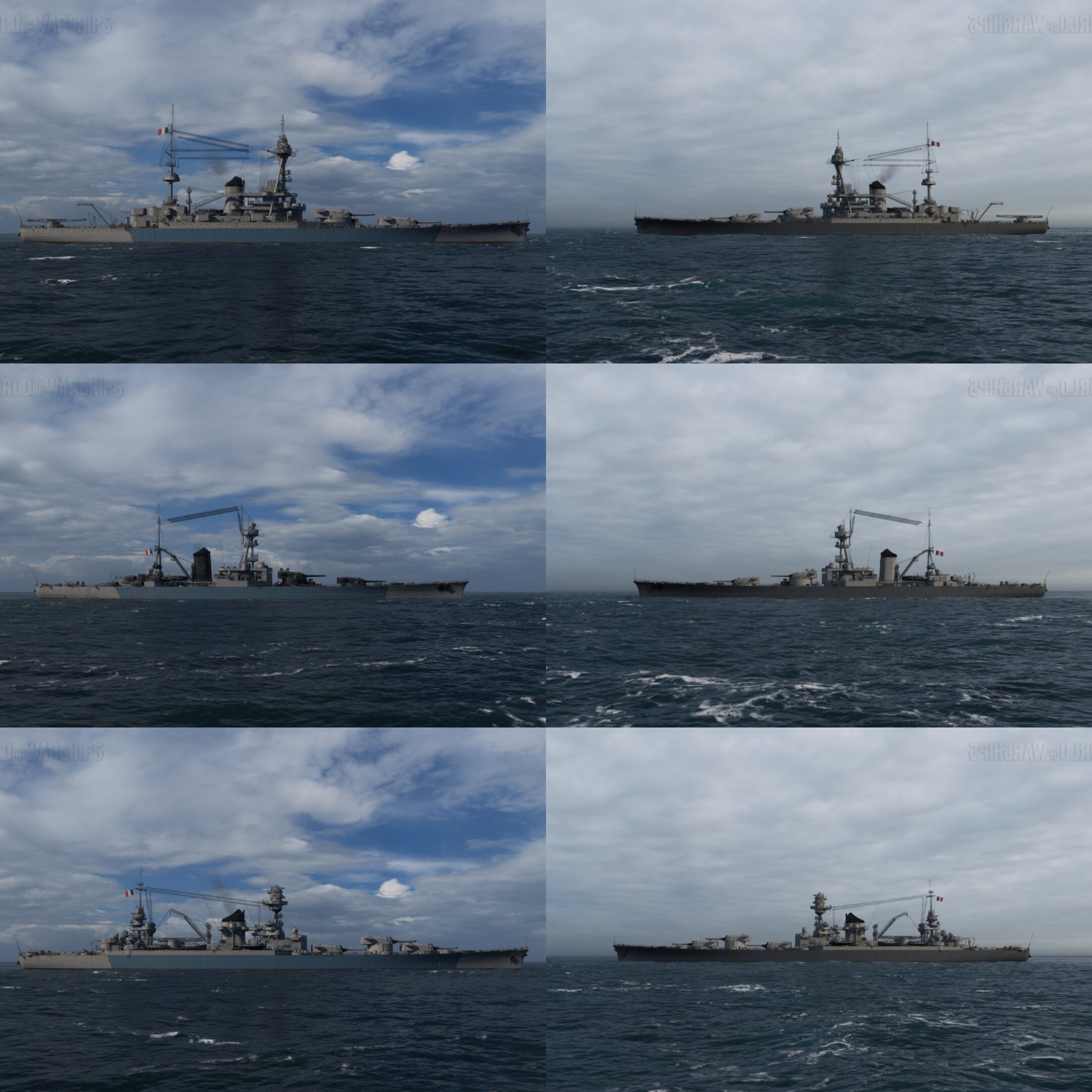 I figured out a bit with the battlecruisers of France: now type 2 camouflage is Admiralty, while type 5 camouflage and permanent camouflage are a two-tone paint scheme similar to the post-war Jean Bart. Toulon remained unchanged - a one-color scheme of the Company.